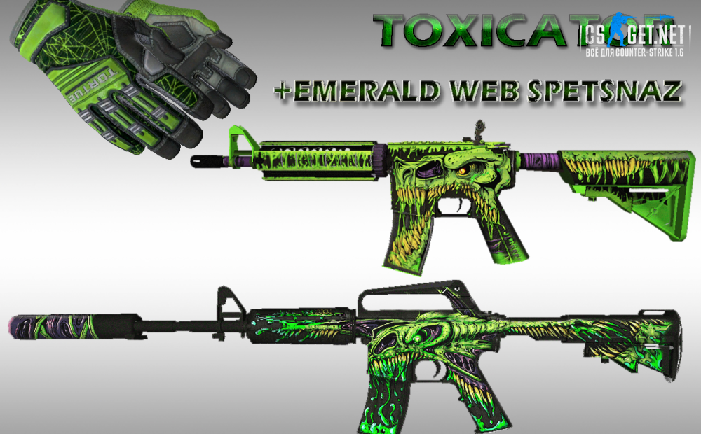 Модели HD M4A1S&M4A4 TOXICATOR с перчатками Emerald web для CS 1.6